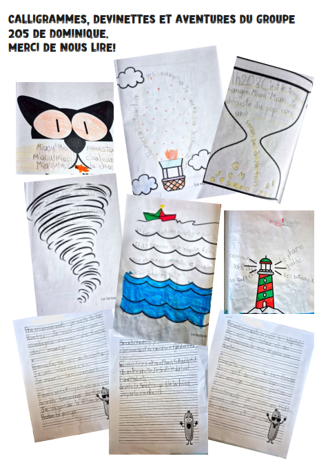 Notre projet éducatif met l’accent sur l’écriture, qu’il s’agisse de l’écriture quotidienne, du plaisir d’écrire, de composer un message, d’imaginer des histoires ou de partager des moments du quotidien. Au cours de l’année, nous partagerons ici les réalisations de certains élèves de notre établissement. Les projets ne seront pas toujours entièrement aboutis, car l’objectif principal est de cultiver le plaisir d’écrire. Gardez à l’esprit qu’ils sont en phase d’apprentissage et que tout ne sera pas nécessairement parfait. Les enseignants ont la liberté de décider s’ils souhaitent partager ou non leurs réalisations sur notre site internet. Cette autonomie leur permet de mettre en avant leurs projets et leurs succès selon leur propre jugement.